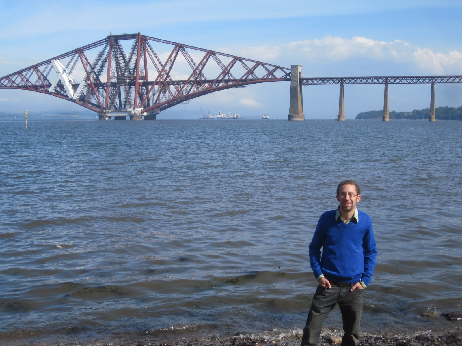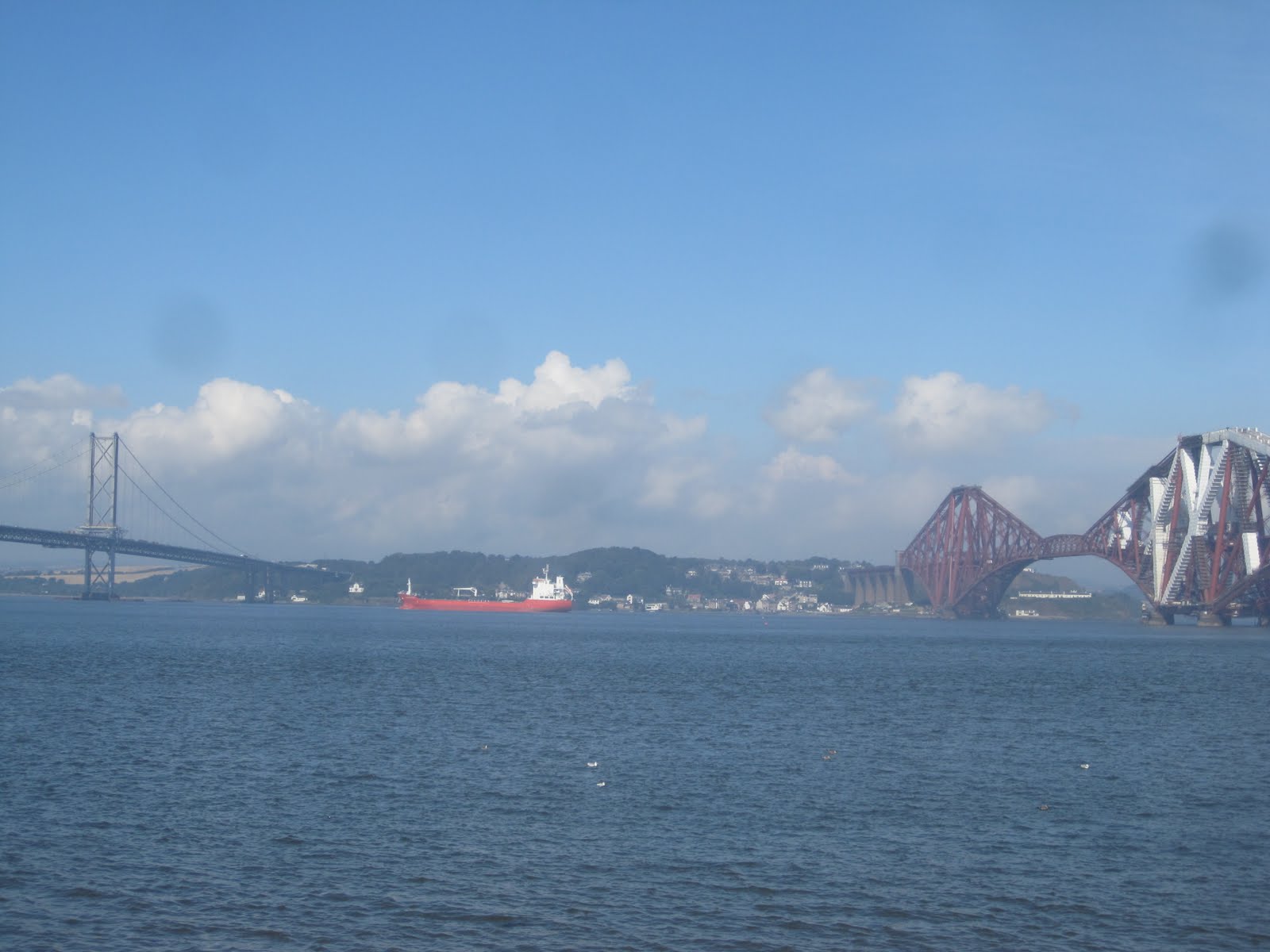 South Queensferry, a 40 minute ride on a local bus from Edinburgh, is noted for having two parallel bridges spanning the gap between the shores. One bridge was built in the 1960s. The other, the more famous one, was built in the 1890s. The bridge looks as it does because when the previous bridge collapsed in the 1880s, in response they built a bridge that was incredibly overdesigned. Thus, it looks very bulky and even medieval-like in my opinion.